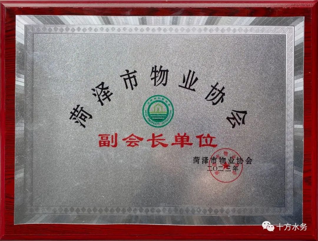 为加强行业交流,不断汲取优秀行业经验,经菏泽市物业协会严格审查后,十方水务于2022年8月正式加入菏泽市物业协会,8月19日协会授予十方水务副会长单位牌匾。