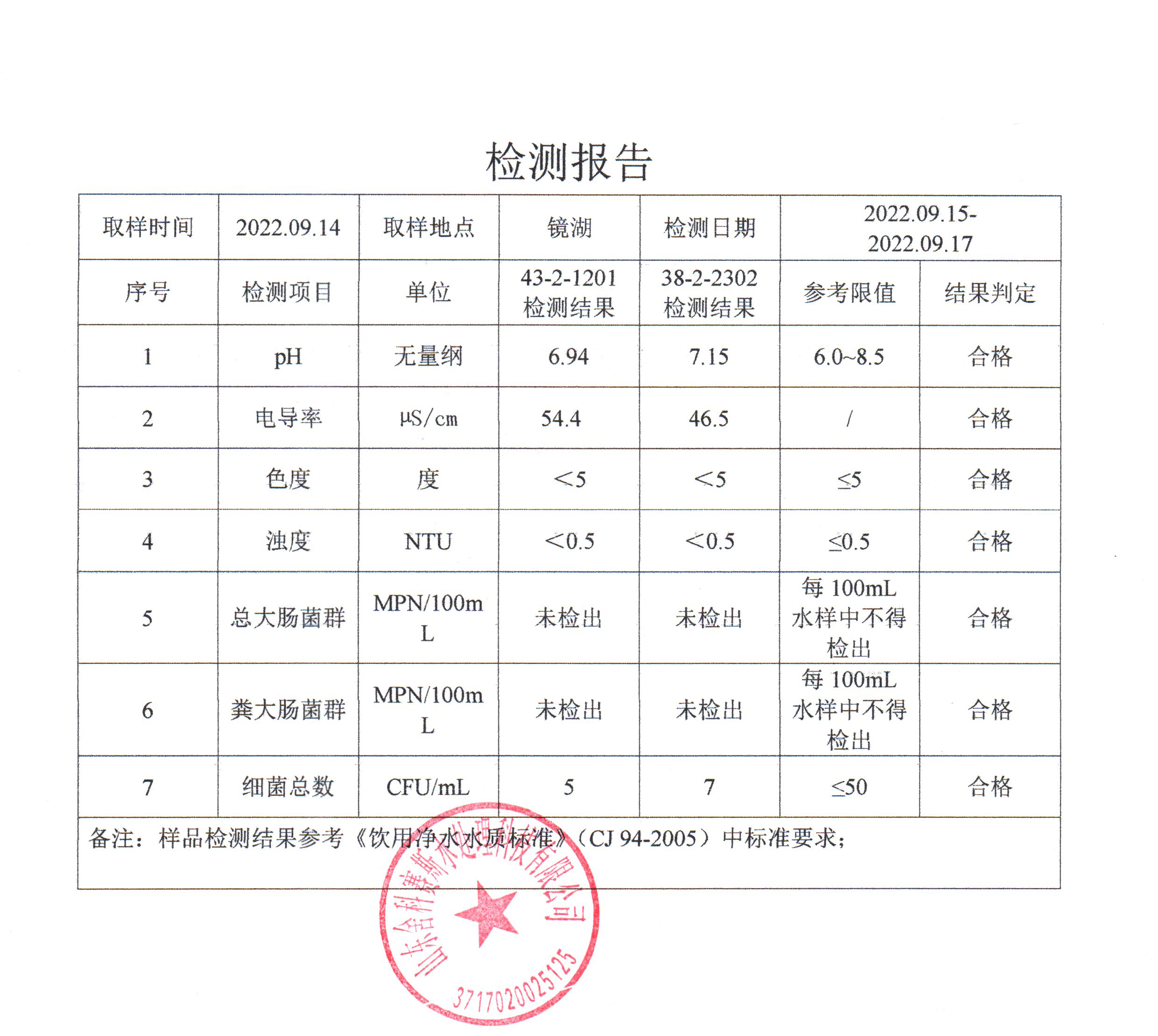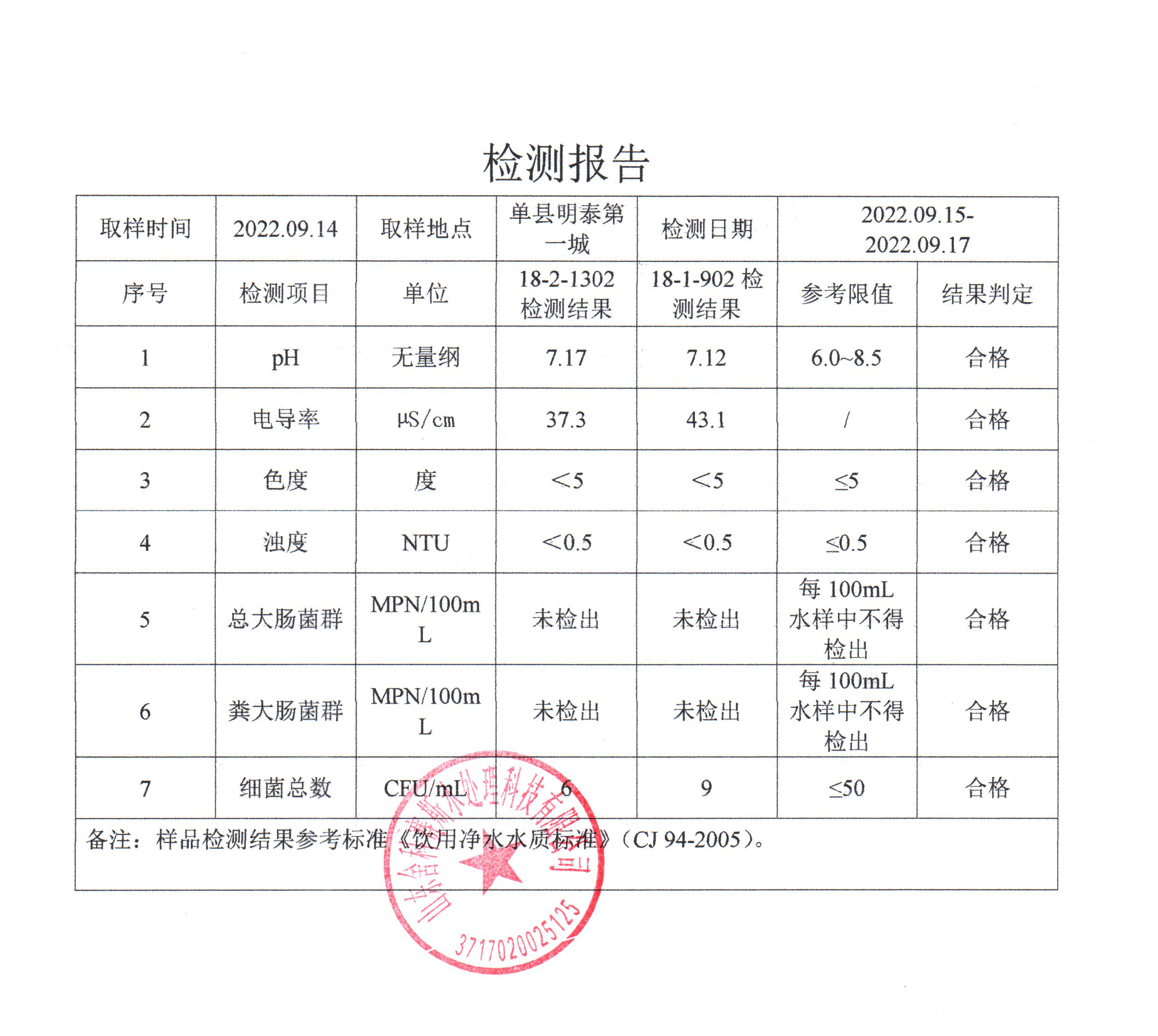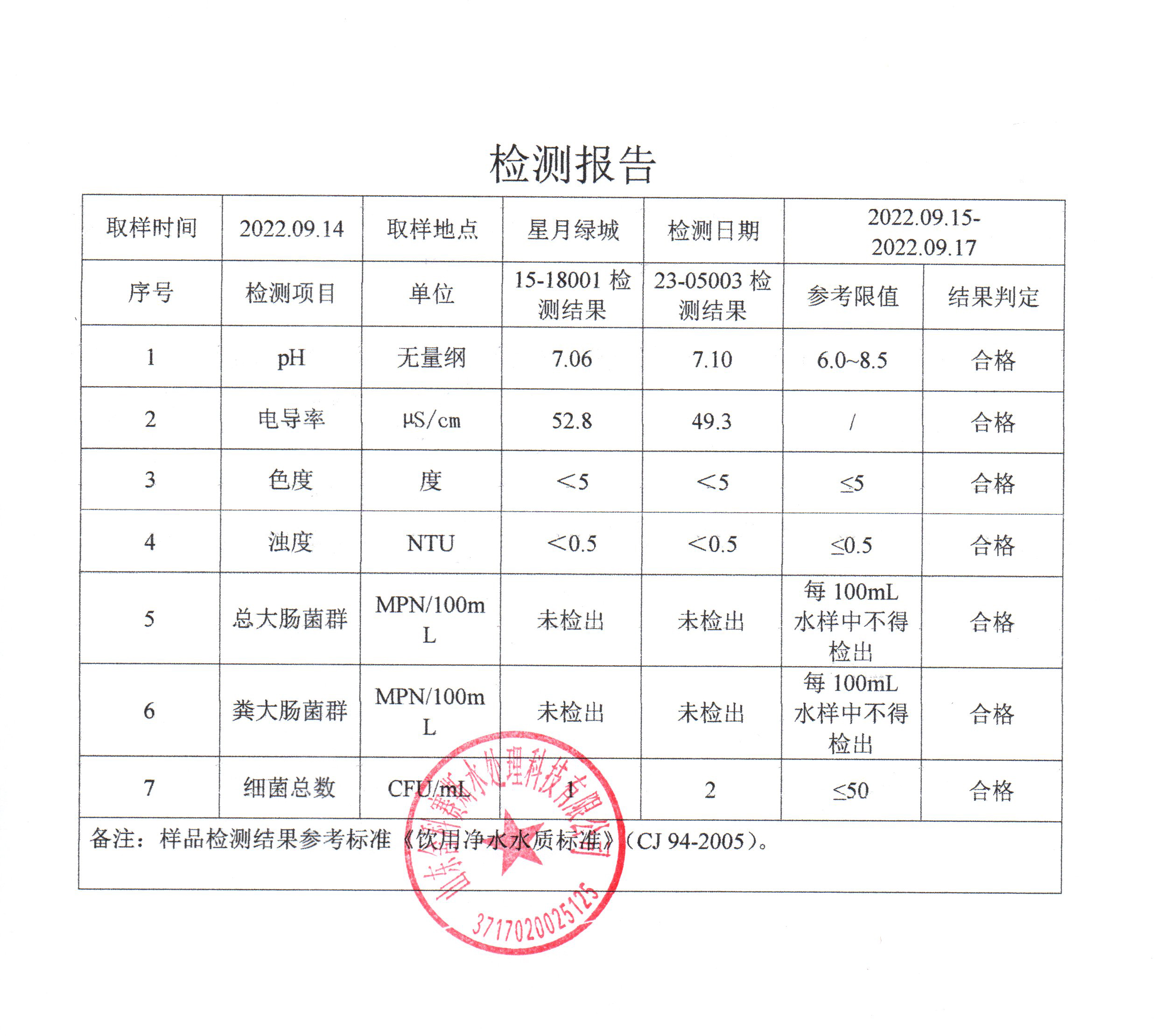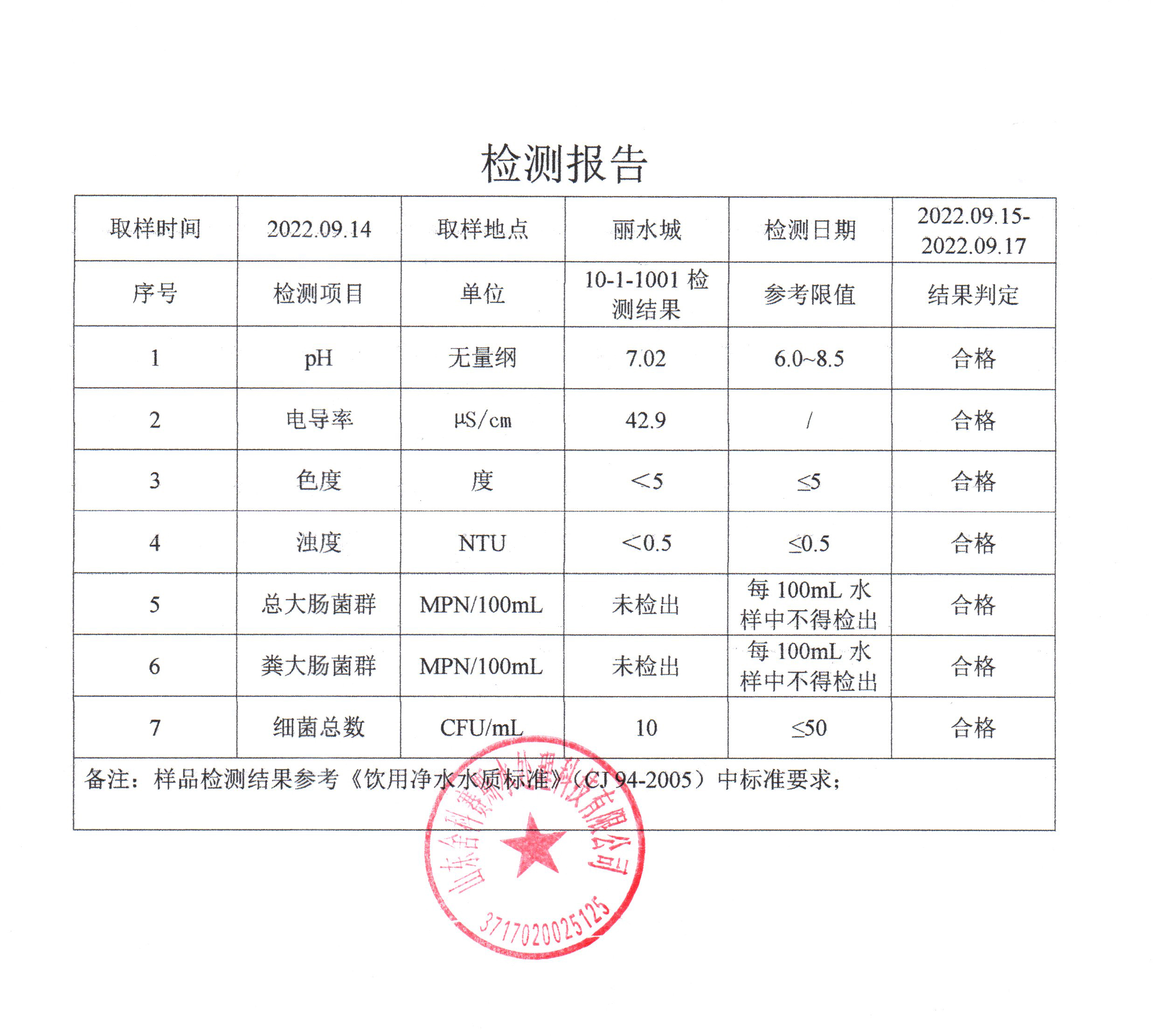 从检测报告看,每个社区抽检的管道直饮水水样各项检测指标都符合《饮用净水水质标准》CJ94-2005。也由此可见,十方水务对管道直饮水水质的高度重视,严格执行国家相关标准,加强直饮水的抽检频率,在每月自检的基础上,还每年委托有检测资质的第三方检测机构对管道直饮水供水小区进行抽检,保障老百姓喝上更安心、更放心的优质水。